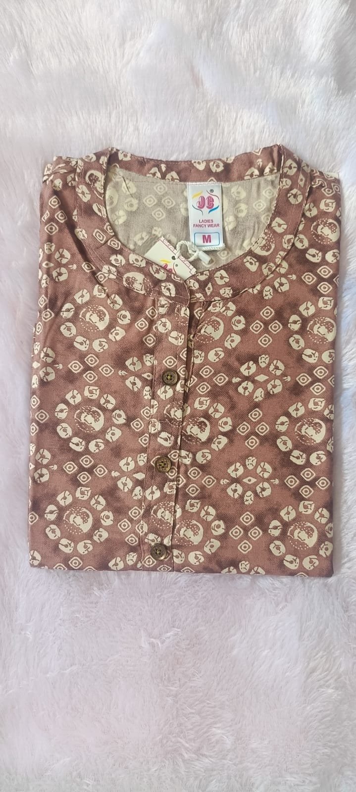 Rubi Brown Printed Rayon Kurta – Mocna