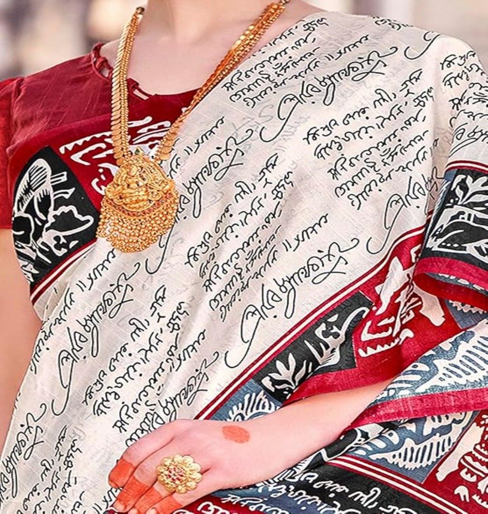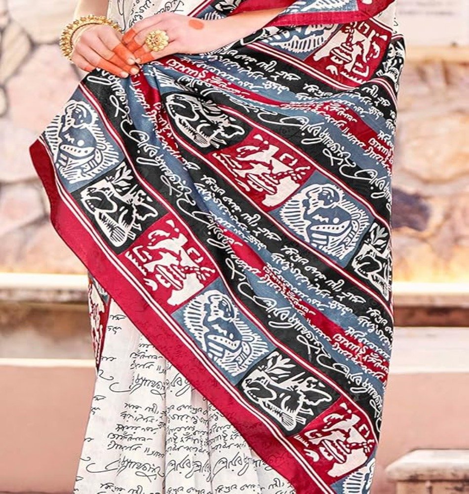 Apple Saree - Off-White and Red Bhagalpuri Printed Saree - Mocna