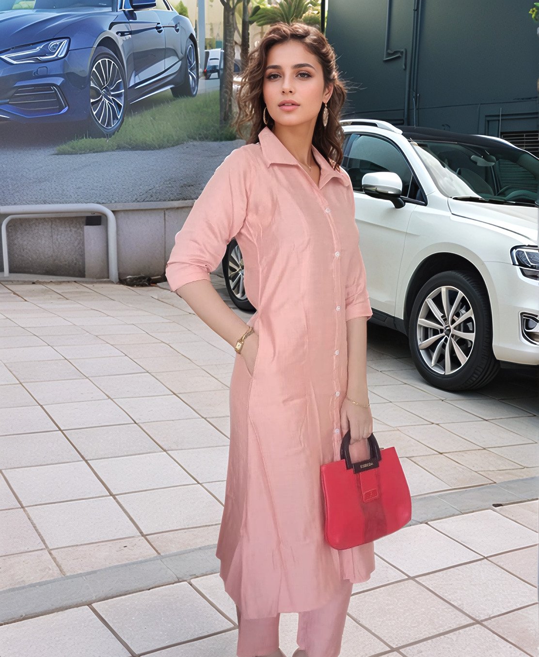 Peach Pant & Long Kurta Set for Women – Daily & Office Wear – Mocna
