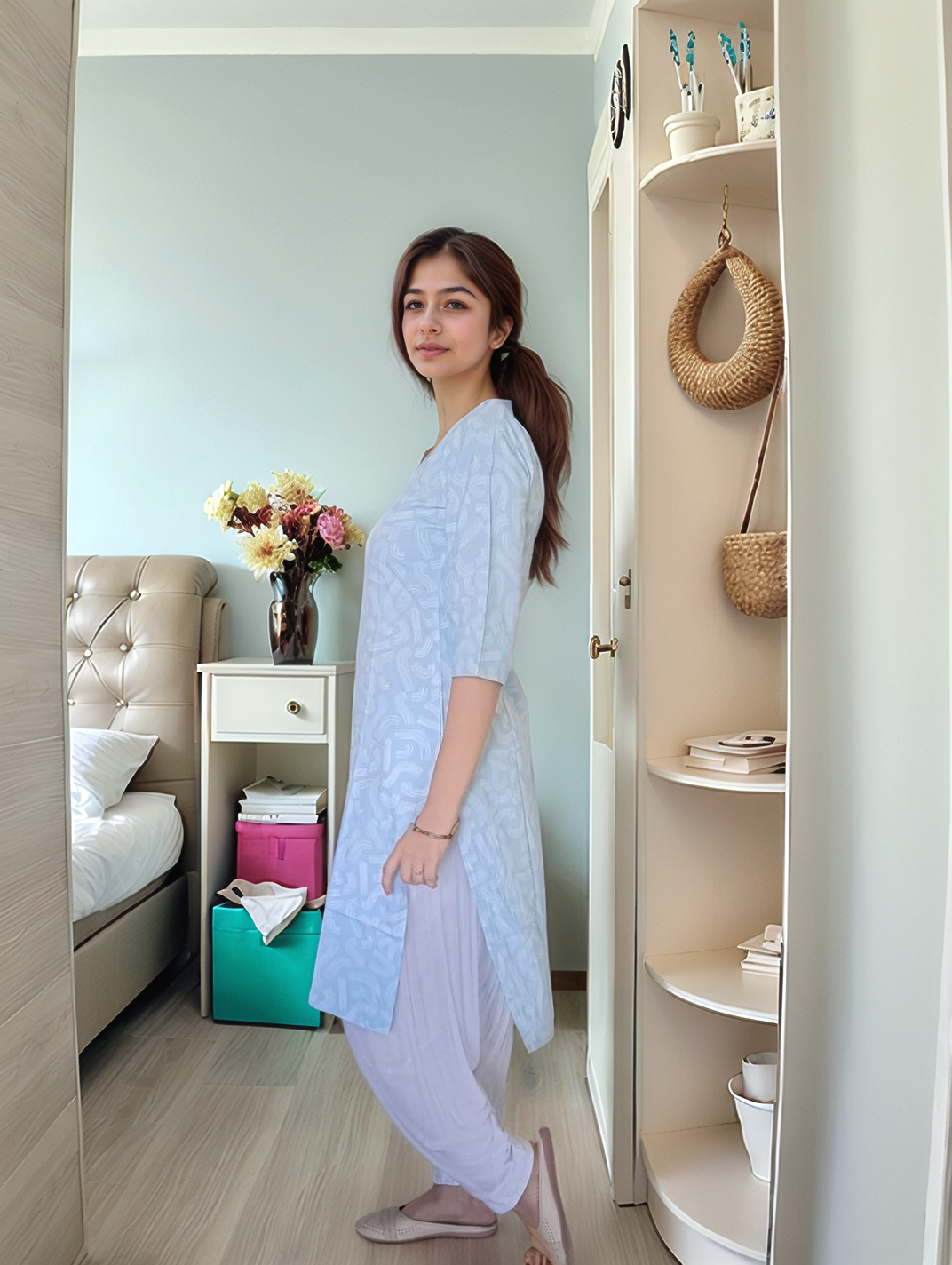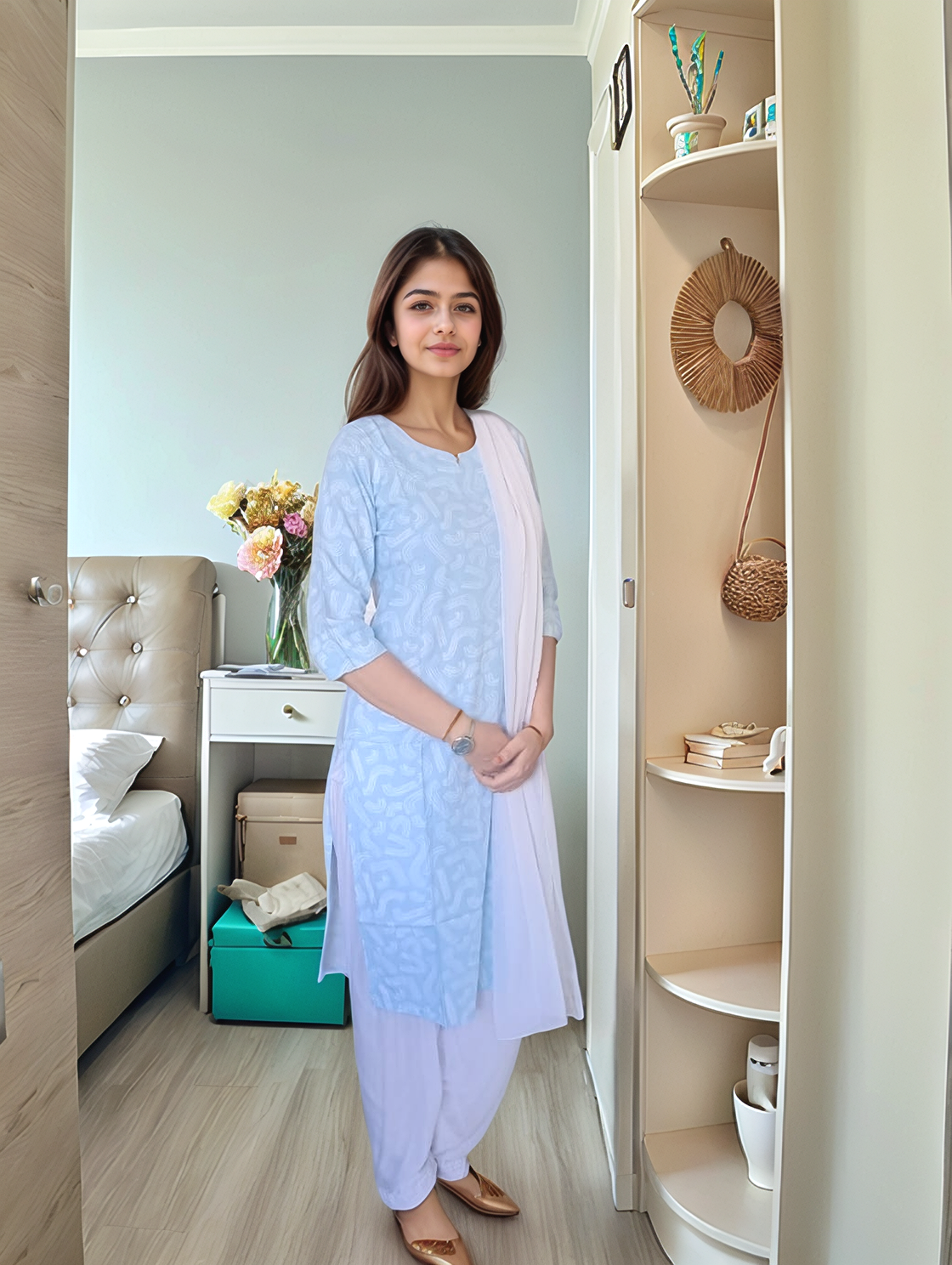Layer It: Add a light, printed dupatta or a cropped jacket for a trendy, layered look.