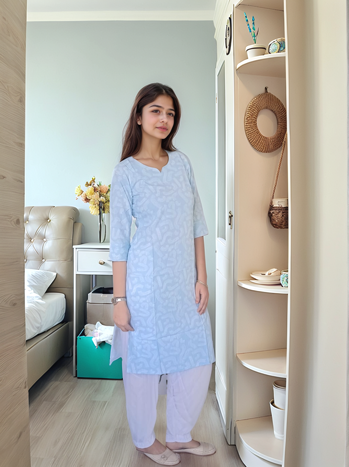Office Look: Pair this kurti with white or beige trousers and minimal jewelry for a polished professional appearance.